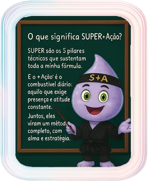 Dessa jornada nasceu o Método SUPER+Ação — uma metodologia prática, criada na dor e lapidada na disciplina. Com ela, ajudo pessoas reais a alcançarem resultados reais com tráfego pago, por meio de estratégia, verdade e parceria.